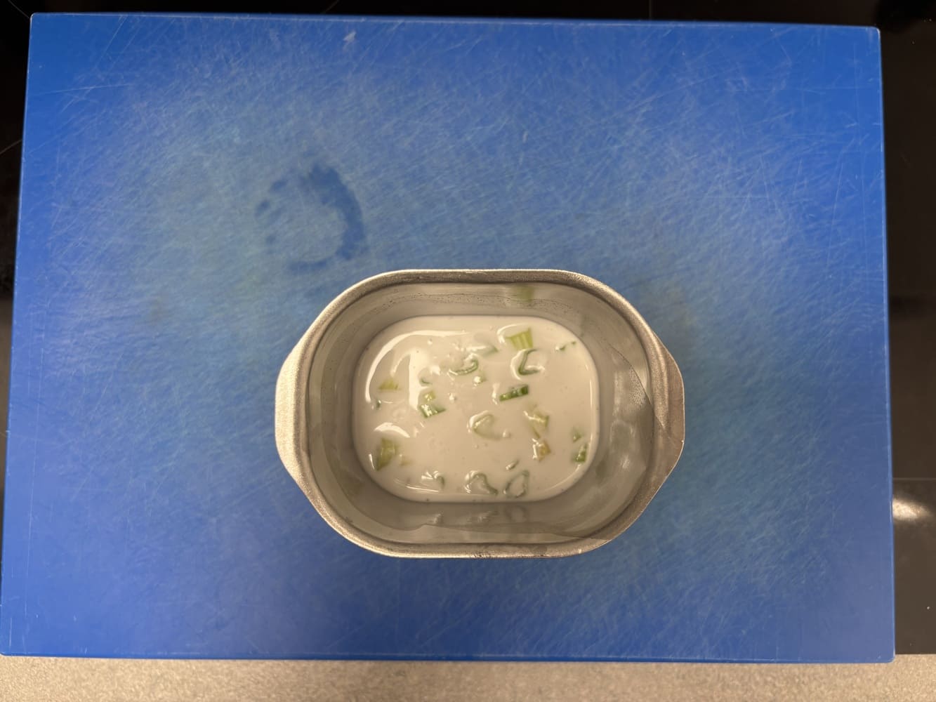 Use the same base as in container 2, but with one variation: add zucchini (150 g), 40 g of spring onions, fine salt, 1.5 g of curry powder, and half a teaspoon of grated fresh ginger.