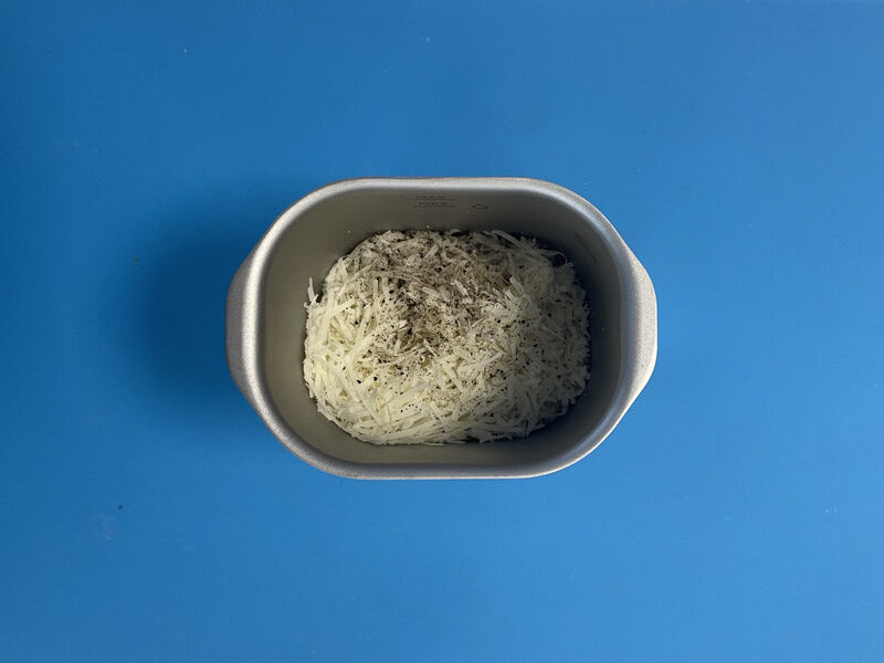 Mescola leggermente per distribuire il sale in modo uniforme: sarà fondamentale per insaporire la pasta durante la cottura automatica.
